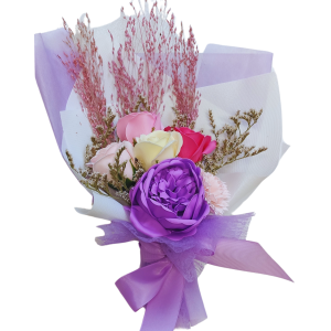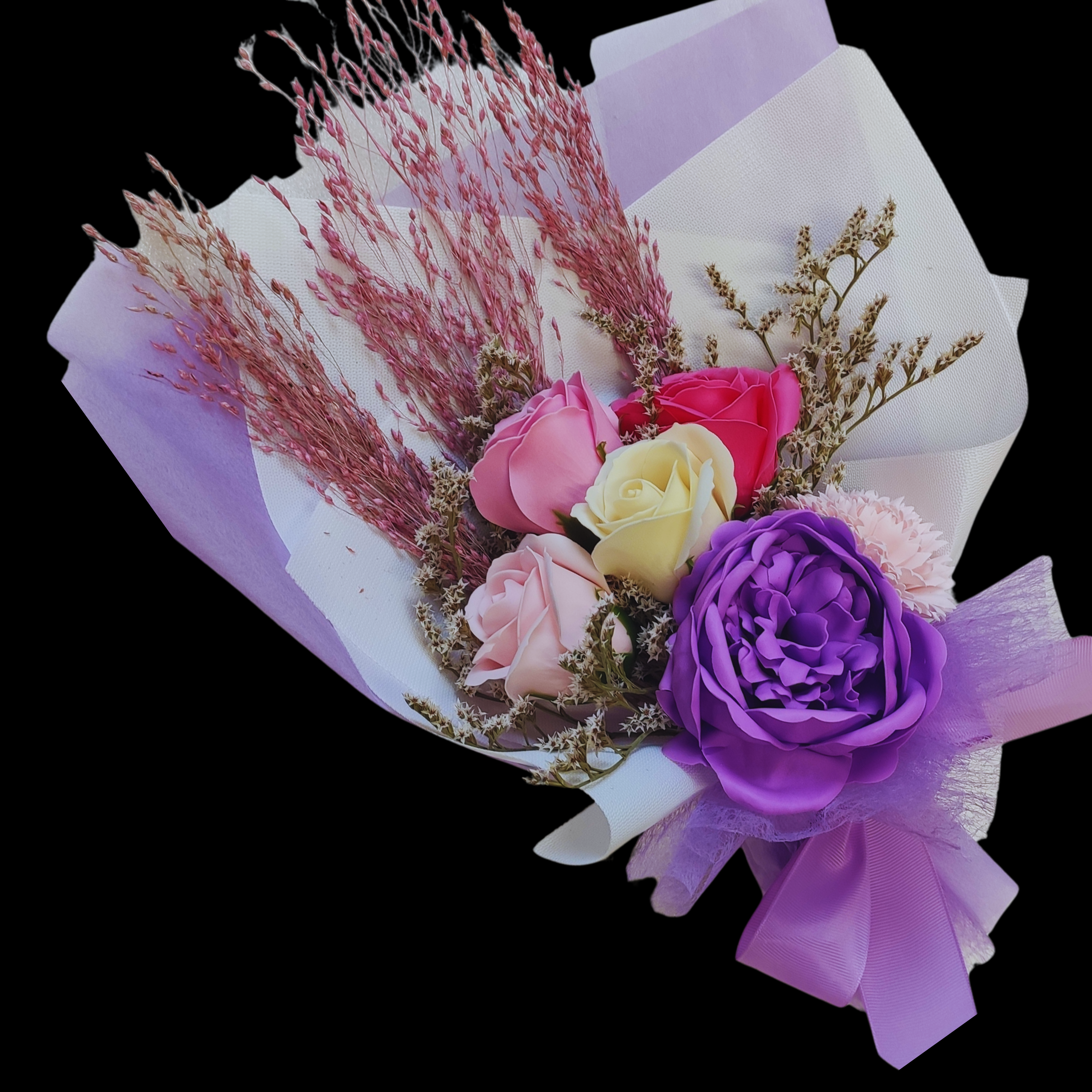 Bukiet kwiatów mydlanych biało- lawendowy, Bukiet mydlany na prezent