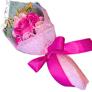 Bukiet mydlany to piękny i oryginalny prezent dla kogoś bliskiego. Bukiet ten składa się z różowej peonii oraz róż w różnych odcieniach różu, które wyglądają jak prawdziwe kwiaty, ale są wykonane z mydła. Bukiet jest otulony różową siatką i przewiązany wstążką, co dodaje mu elegancji i uroku. Bukiet mydlany nie tylko cieszy oko, ale także pachnie cudownie, dzięki czemu można się nim delektować przez długi czas. Bukiet mydlany to idealny sposób na wyrażenie swoich uczuć i podziękowania.