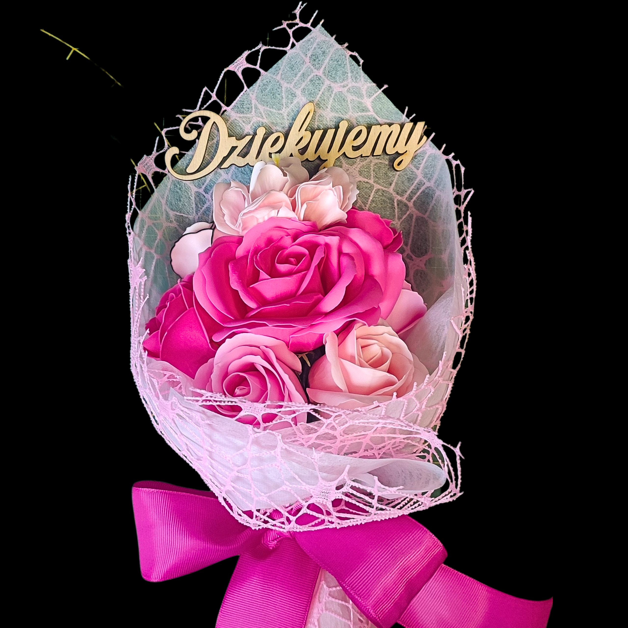 Bukiet mydlany z peonią i różami - prezent dla nauczyciela, topper Dziękujemy