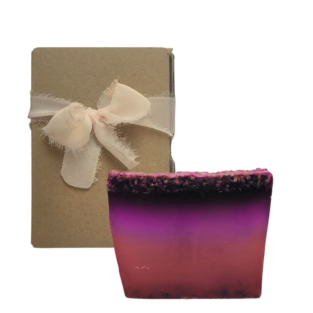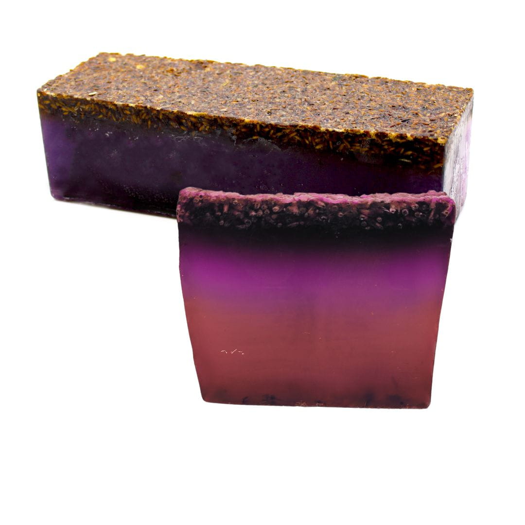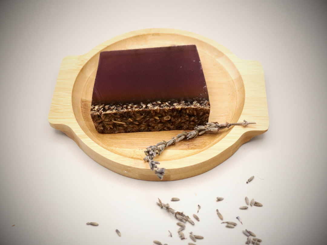 Wyjątkowe mydło Śpiąca Lawenda. Ręcznie robione metodą topienia i wylewania. O wyjątkowych właściwościach lawendy chyba nie trzeba nikogo przekonywać. Olejek eteryczny ma silne działanie antyseptyczne i przeciwgrzybicze, dlatego dobrze sprawdza się w pielęgnacji skóry tłustej. Jest również korzystny dla skóry dojrzałej ze względu na właściwości regenerujące, wygładzające i antyoksydacyjne. Oczywiście nie sposób nie wspomnieć o kojącym zapachu, który pozwala się zrelaksować i odstresować. Wierzch pokryty suszonymi kwiatami lawendy dla wzmocnienia aromatu i pięknego wyglądu.