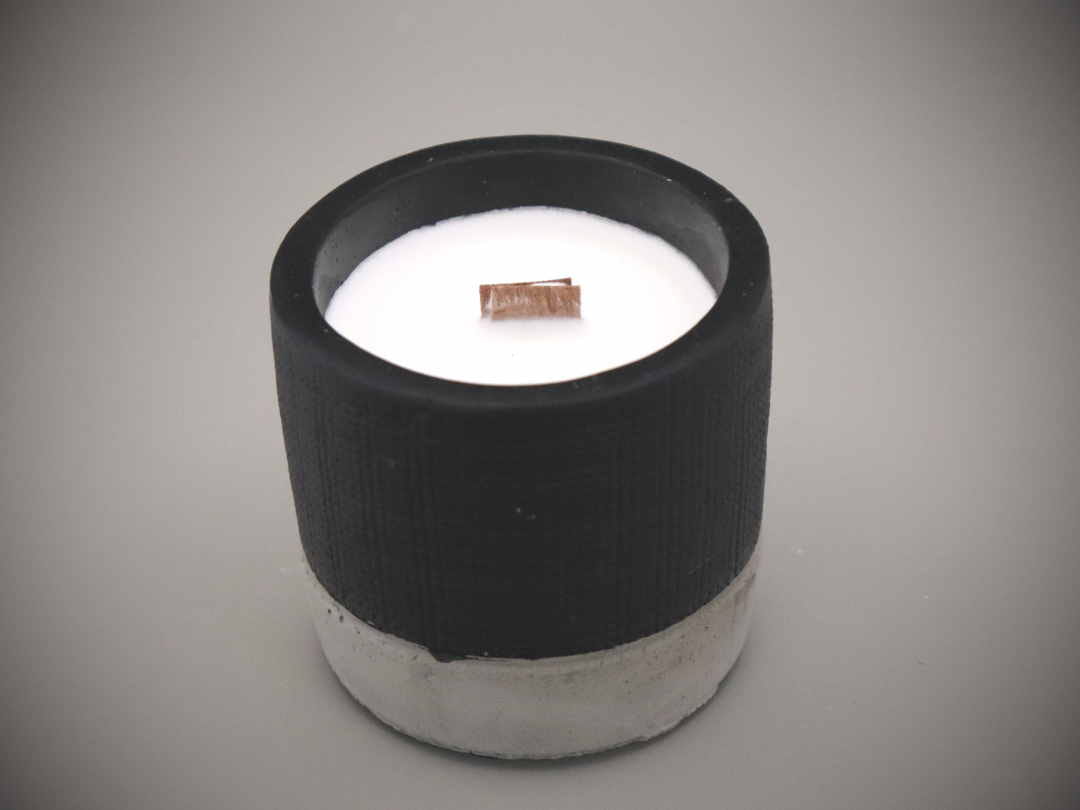 Świeca z naturalnego wosku sojowego z olejkami zapachowymi wysokiej jakości. Umieszczona w betonowym pojemniku z drewnianym knotem stanowi wyjątkową dekorację. Nie zawiera syntetycznych wosków i parafiny.